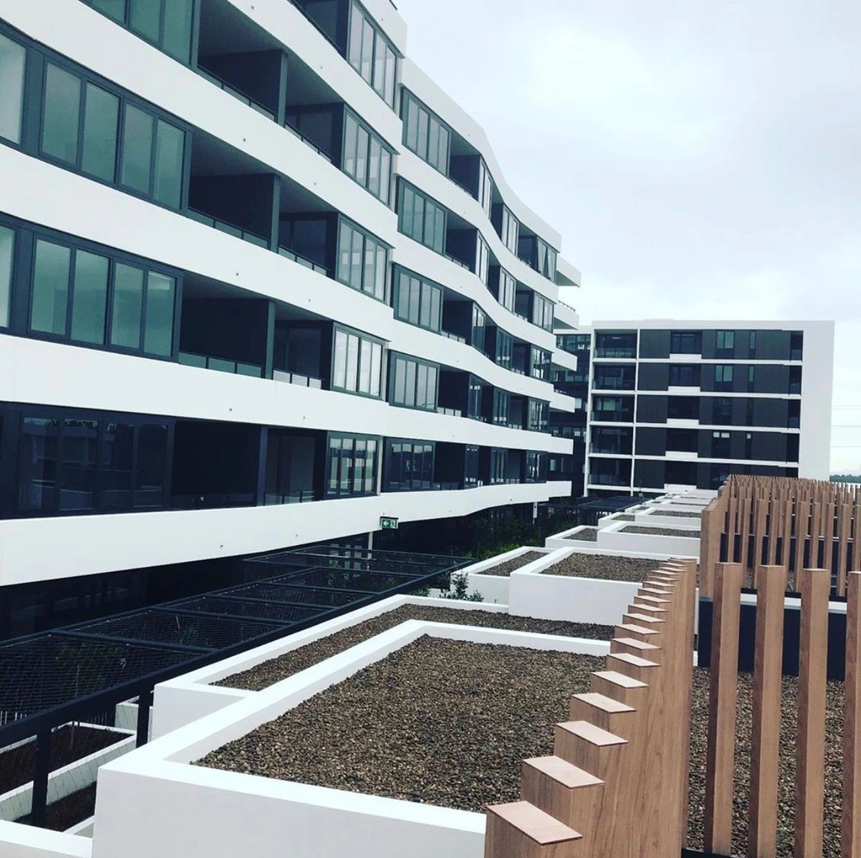 Construction of a 17 residential building with 4 levels of basement parking and curtain wall facade.